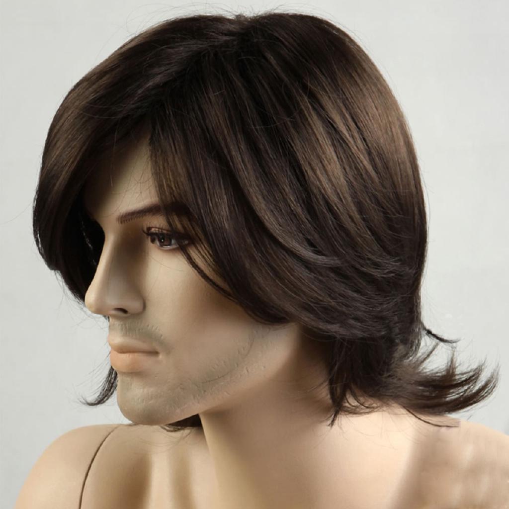 Men Short Brown 70s Retro Disco Cosplay Synthetic Hair Wigs