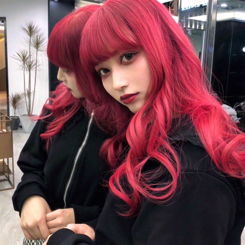 Ready Stock Wine Red Big Waves Curly Long Hair Wigs With Air Bangs